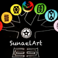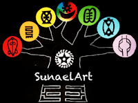 Die Logobasis ist der “Lebensbaum” Baobab. Er ist Sinnbild für ein kraftvolles Leben und Wurzeln in Afrika. Der Baum ist mit Blättern geschmückt, die für die Ideale von SunaelArt stehen: Es sind Symbole der Adrinka Kultur (Westafrika).